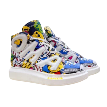 Baskets décontractées en cuir de veau pour hommes et femmes, chaussures de sport unisexes, bottes montantes, impression de lettres de personnalité, plate-forme blanche, rinçage