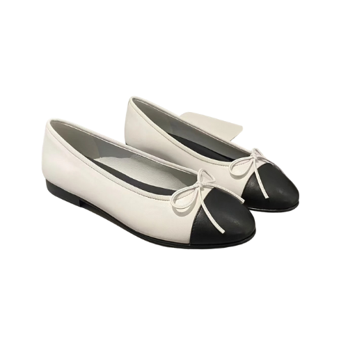 Ballerines de danse en cuir véritable faites à la main pour femmes, chaussures plates peu profondes classiques, nœuds papillon